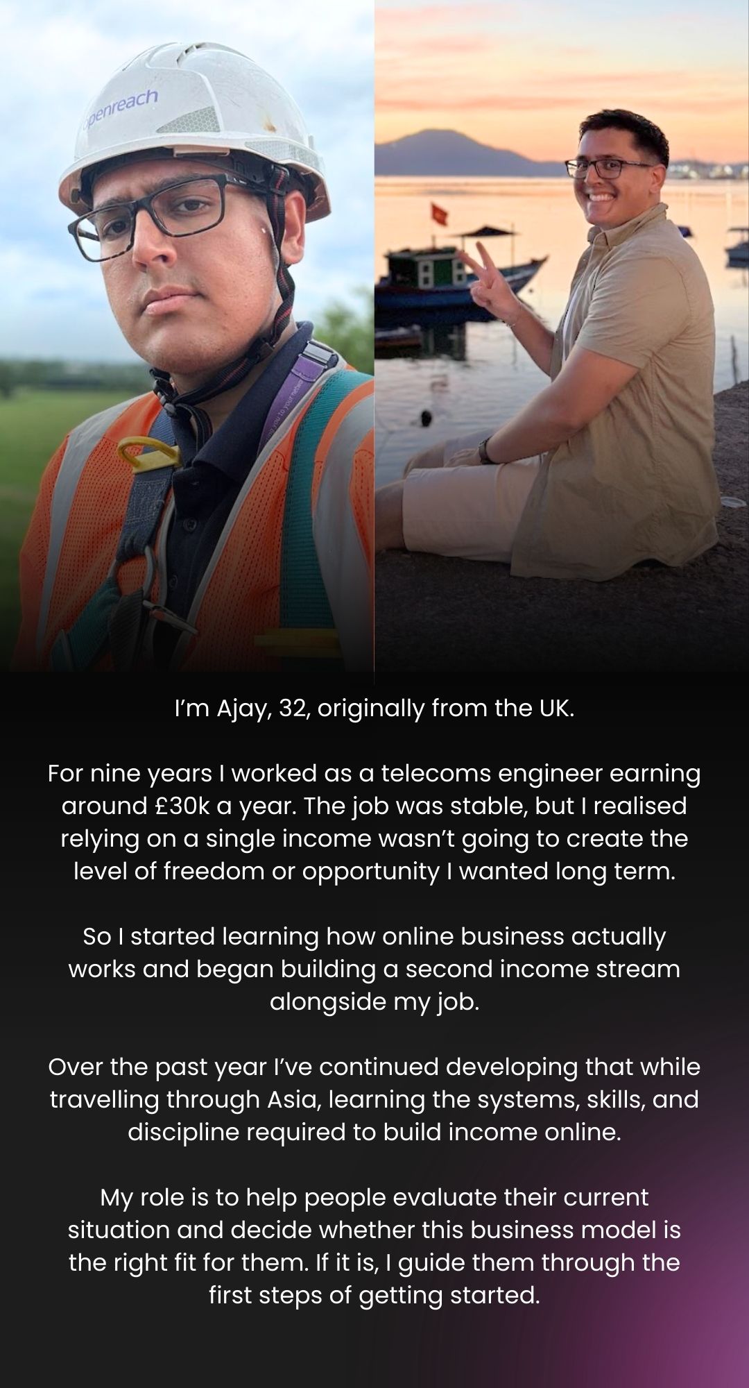 The Discovery Course was the first thing that gave me clarity. It showed me a proven business model, real mentorship, and a way to build income alongside my job part time.